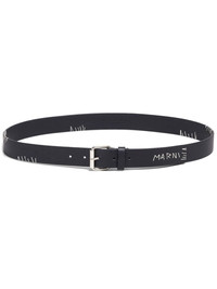 Marni Mending leather belt Highlights - Black - Calf leather - Grained texture - Embroidered logo - Embroidered design - Silver-tone buckle fastening - Punched holes - Adjustable fit Made in Italy Composition Calf Leather 100%