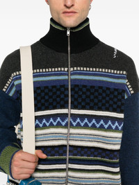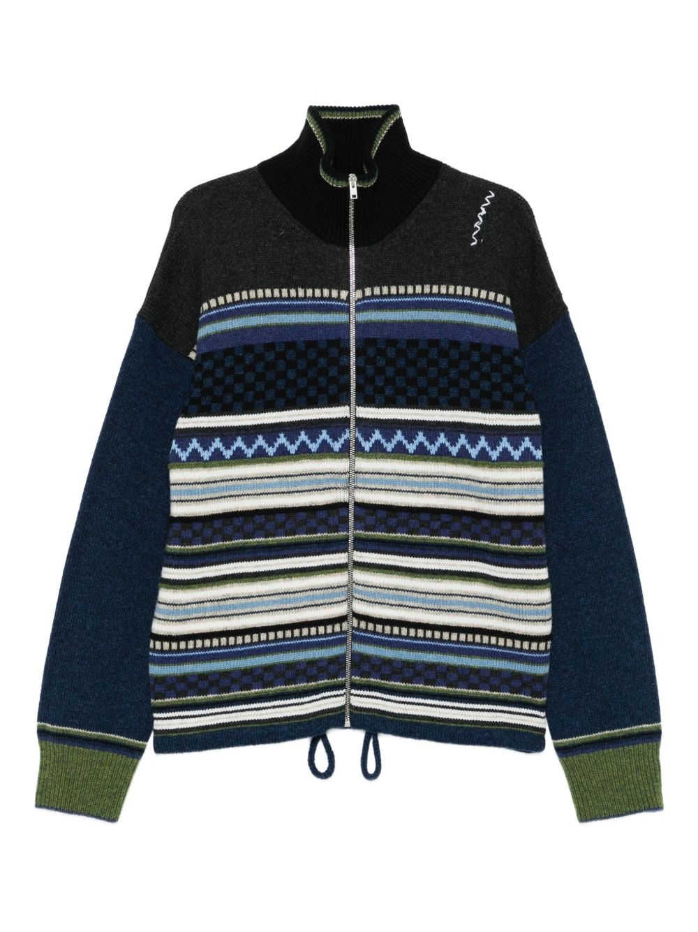 striped zip-up cardigan Highlights - Glass blue - Wool - High neck - Zip fastening - Drawstring hem - Multicoloured striped pattern - Geometric pattern Made in Italy SIZE & FIT Model measurements Height 6 ft 2 in(1.87 m) Bust/Chest 37.79 in(96 cm) Hips 37.79 in(96 cm) Waist 30.31 in(77 cm)