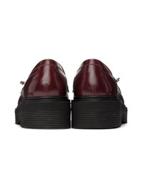Grained calfskin loafers in brown. · Square moc toe · Strap with cutout and O-ring at vamp · Logo embossed at outer side · Grained leather lining · Stacked foam rubber platform midsole · Foam rubber outsole · Platform: H1.75 in Supplier color: Brown Upper: calfskin. Sole: rubber.