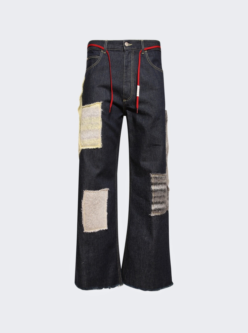 Details - Wide-leg denim jeans - Five pocket styling - Mohair patches throughout - Lace-belt detail - 100% Cotton; 100% Mohair - Model is 6'1"/185cm and is wearing a size US32 Brand Style: PUJU0019LX USCX27 Designer/Brand: MARNI