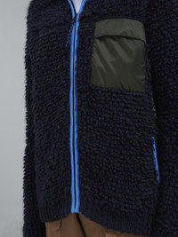 Long-sleeved cardigan. Fur stitch. Zip fastening. Regular fit. Chest pocket. Side welt pocket with fabric pocket bag. Windproof-fabric side patch pocket. Ecru satin logo label. DETAILS COMPOSITION Primary Fabric: 47% Mohair Knit 47% Acrylic Knit 6% Wool Knit - Secondary Fabric: 100% Polyamide Woven - Coating: 100% Polyurethane - Padding: 100% Polyester