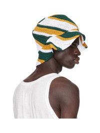 5-gauge crocheted organic cotton bucket hat in multicolor. Stripes throughout. Part of the High Summer collection. Supplier color: Turquoise