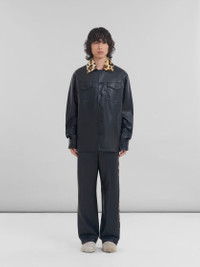 Long-sleeved shirt made from smooth and supple nappa leather. Contrasting shaved shearling collar with animalier print. Relaxed fit. Chest patch pockets with buttoned flaps. Buttoned cuffs and front closure. Finished with handcrafted Marni Mending embroidery on the shoulder. Made in Italy MODEL CUMY0025Q1ULA73600N99 FIT The model is 6' 1". The model is wearing size 48 IT. COMPOSITION 100% PVN