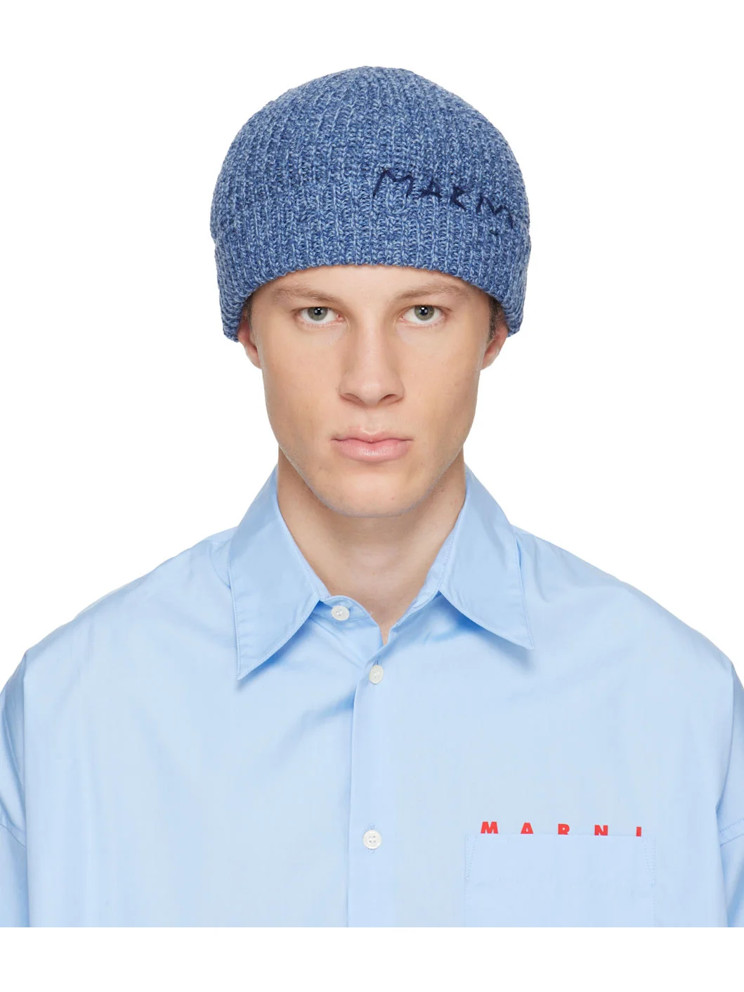 Rib-knit virgin wool beanie. · Hand-stitched logo at face · Distressing at rolled brim Supplier color: Royal 100% virgin wool. Made in Italy 252379M138001