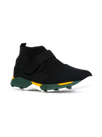 high-top sneakers Black wool hi-top sneakers from Marni featuring a round toe, a pull tab at the rear, a scuba upper and a green and yellow rubber sole. Made in Italy Composition Sole: Rubber 100% Outer: Polyamide 50%, Wool 50% Lining: Polyamide 100% SIZE & FIT Measurement Sole height 0.78 in(2 cm) HEIGHT 3.93 in(10 cm) HEEL 1.18 in(3 cm)