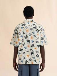 OFF-WHITE POPLIN BOWLING SHIRT WITH WOLVES, RAVENS AND DOVES PRINT