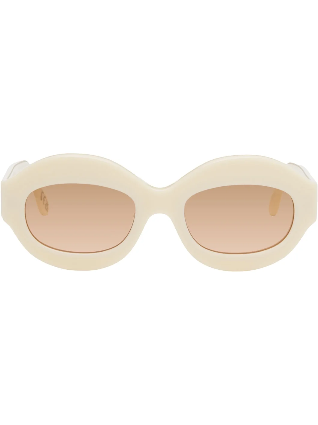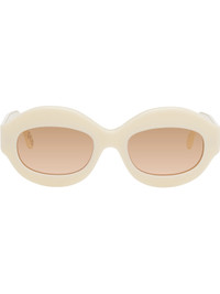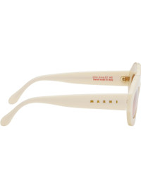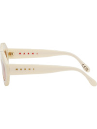 Handcrafted round acetate-frame sunglasses in off-white. · Brown nylon lenses · Integrated nose pads · Logo stamp at temples · Includes pouch · Size: 54.22 145 Part of the Marni x RETROSUPERFUTURE collaboration. Supplier color: Panna Acetate. Made in Italy 252379M134036
