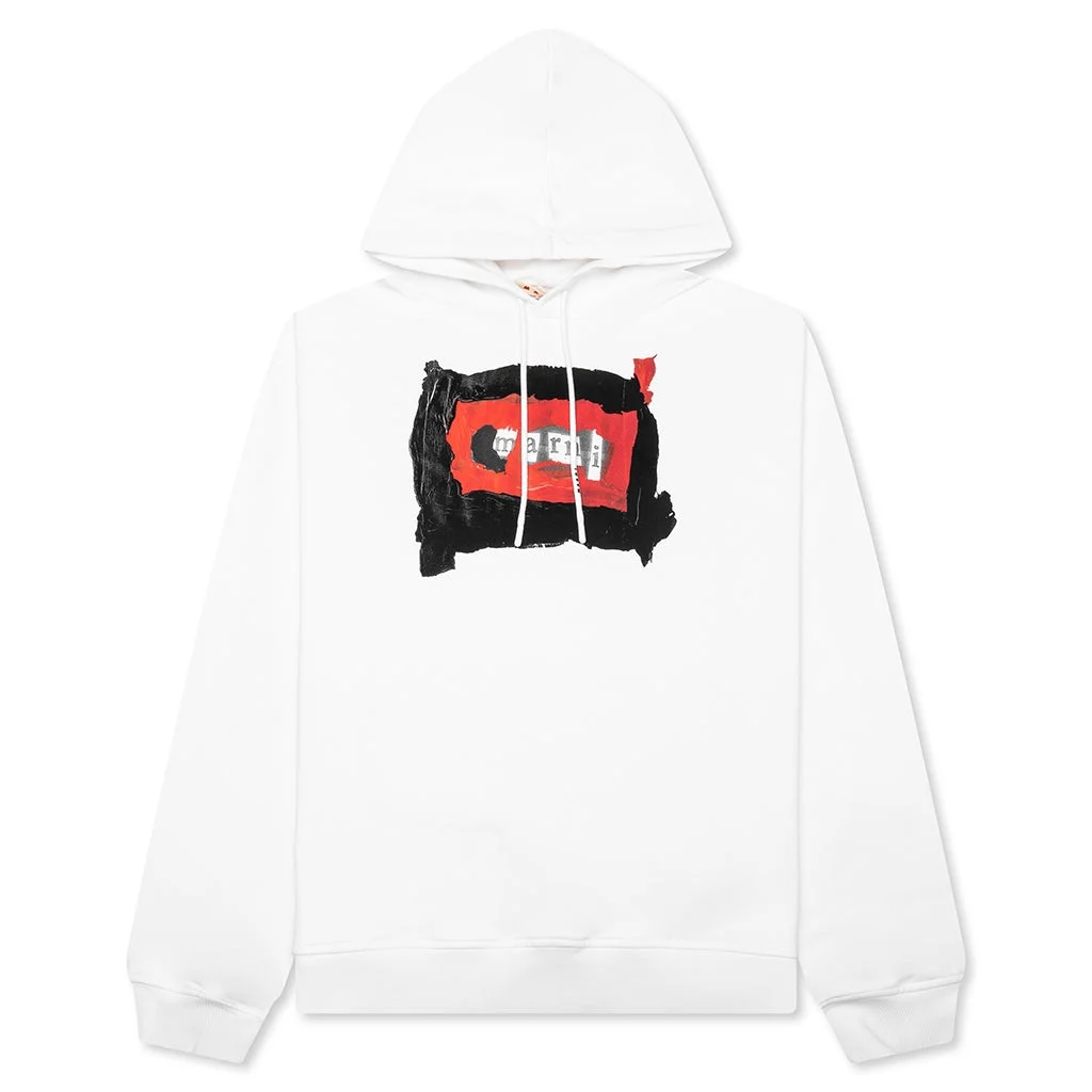 PAINTED ON COLLAGE RED LOGO HOODIE - LILY WHITE