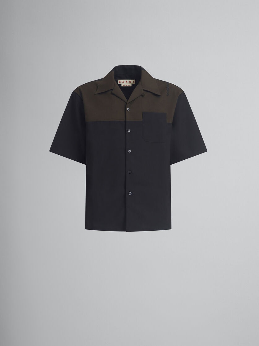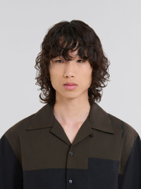 Short-sleeved shirt in colour-block cool wool. Boxy fit with a chest pocket. The collar can be worn open like a bowling shirt or fully buttoned in a classic style. Marni label on the back yoke and handcrafted Marni Mending embroidery on the shoulder. Made in Italy MODEL CUMU0326QSTW83900N99 FIT The model is 6' 1". The model is wearing size 48 IT. COMPOSITION Primary Fabric: 100% Virgin Wool Woven - Secondary Fabric: 100% Virgin Wool Woven