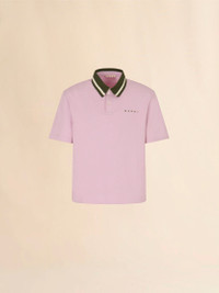 Short-sleeved polo shirt made from cotton pique. Regular fit with button placket. Contrast collar with stripe. Finished with a rubberised Marni logo print on the chest. MODEL POMU0051LSUTC59900C20