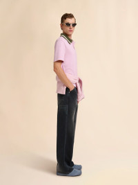 PINK PIQUÉ POLO SHIRT WITH STRIPED COLLAR