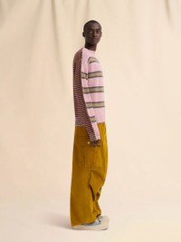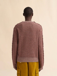 Long-sleeved crew-neck sweater. Half-and-half design with raw-cut external seams. Light knit mohair blend front with horizontal stripes and chunky knit back. Loose fit with crew neck. Made in Italy MODEL GCMG0204Q1UFU193STC47 FIT The model is 6' 1". The model is wearing size 48 IT. COMPOSITION Primary Fabric: 67% Mohair Knit 28% Polyamide Woven 5% Wool Knit - Secondary Fabric: 100% Virgin Wool Knit