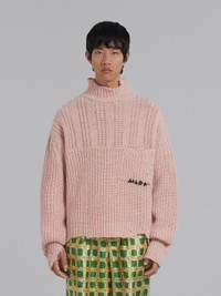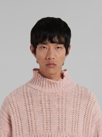 PINK VIRGIN WOOL JUMPER WITH NIBBLED HEM