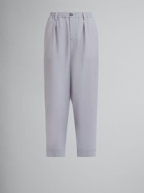 Cropped trousers made from tropical wool. Loose mid-rise fit with front pleats, elasticated drawstring waist and belt loops. Horn button closure. Slant pockets and back buttoned welt pockets. MODEL PUMU0017U4TW83900B99 FIT The model is 6' 1". The model is wearing size 48 IT. COMPOSITION Primary Fabric: 100% Virgin Wool Woven - Half Lining: 69% Cotton Woven 31% Polyamide Woven - Pocket Lining: 100% Cotton Woven