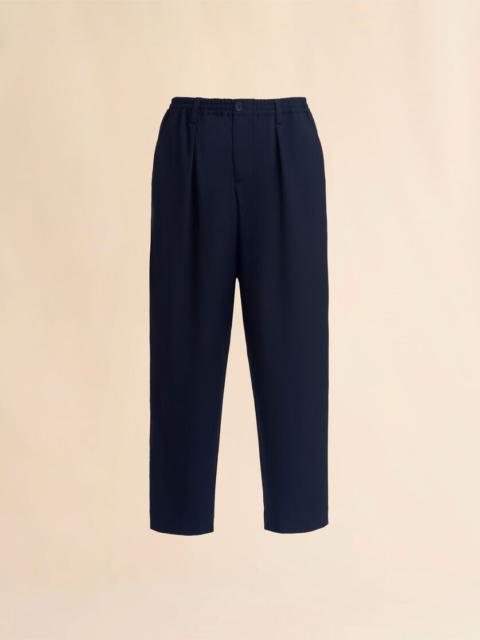 DEEP BLUE TROPICAL WOOL TROUSERS WITH DRAWSTRING WAIST
