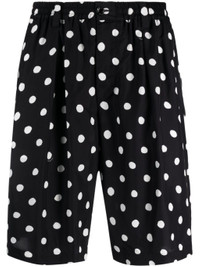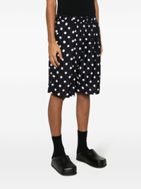 polka dot-print pleated bermuda shorts from MARNI featuring black/white, bold polka dot print, pleat detailing, front button fastening, elasticated waistband, two side slash pockets, rear button-fastening jetted pocket and above-knee length. Size & Fit Model Measurements: Bust: 87cm Height: 187cm Hips: 94cm Waist: 76cm