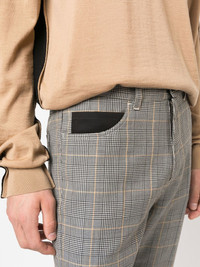 Prince of Wales straight leg trousers grey virgin wool-mohair-cotton blend check pattern tailored design contrast pocket lining straight leg front button and zip fastening belt loops Made in Italy Composition Lining: Cotton 69%, Nylon 31% Outer: Virgin Wool 86%, Mohair 12%, Polyester 2% SIZE & FIT Model measurements Height 6 ft 1 in(1.85 m) Bust/Chest 35.82 in(91 cm) Hips 37.79 in(96 cm) Waist 29.13 in(74 cm) FittingInformation This piece fits true to size. We recommend you get your regular size Designed for a slim fit at the waist and through the thigh, loose from the knee Made with a mid-weight non-stretch fabric Washing instructions Dry Clean Only