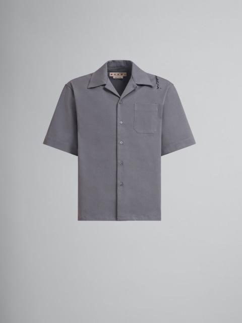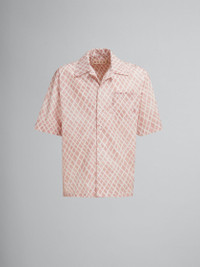 Short-sleeved bowling shirt made from cotton poplin with this season's Landscapes rhombus print, inspired by a hand-drawn charcoal design. Boxy fit with button closure. Chest pocket, hand-embellished with Marni mending logo and stitches. Can be worn with a bowling collar or fully buttoned up. Made in Italy MODEL CUMU0213S4UTC409LAC29 COMPOSITION Primary Fabric: 100% Cotton Woven