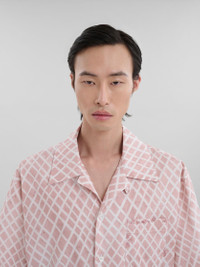 PINK POPLIN BOWLING SHIRT WITH LANDSCAPES PRINT