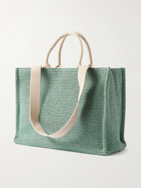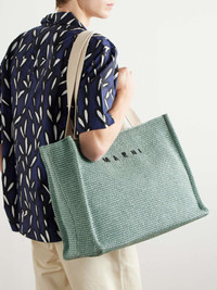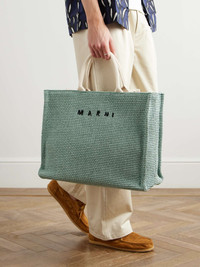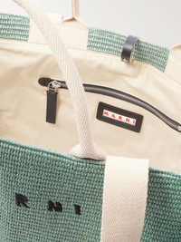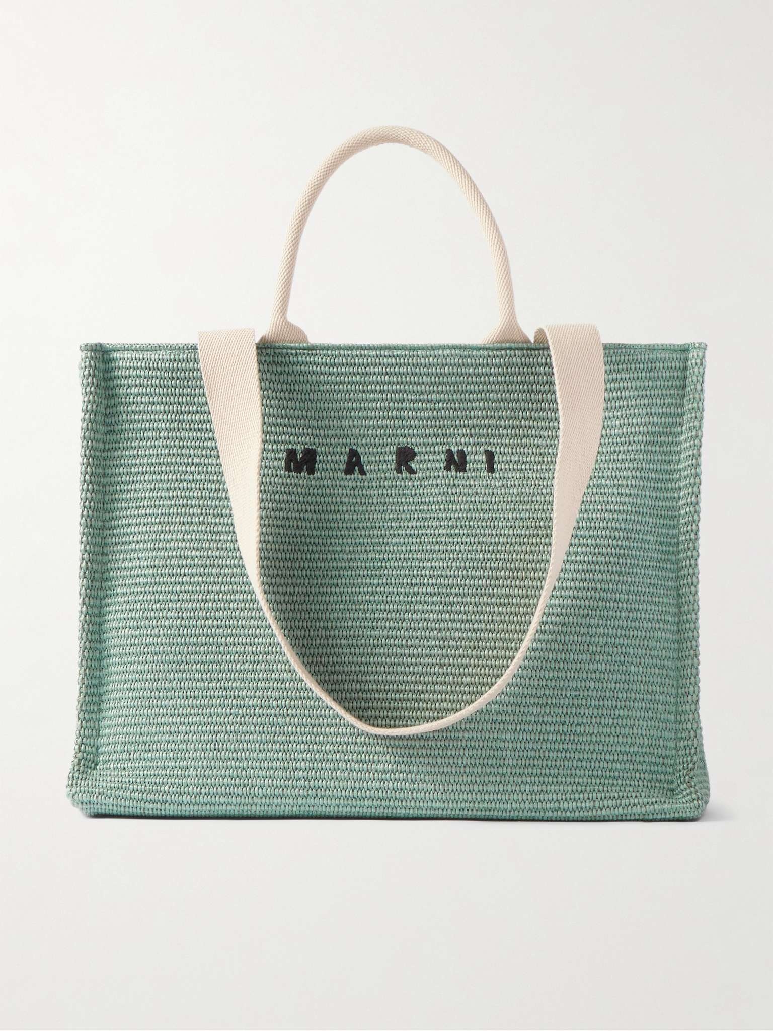 Marni's tote feels playfully reminiscent of the shopping bags you often see at market days. It's been hand-woven in Italy from sturdy raffia and is finished with house branding. Size & Fit - Handle Length: 31cm / 12.2in - Height: 33cm / 13in - Width: 45cm / 17.7in Details & Care - Teal raffia, ecru webbing - Top handles - Internal zipped pocket - Twill lining - Snap fastening - Designer colour: Tea Green - Comes with a dust bag - This bag has a capacity of approximately 29 litres