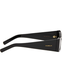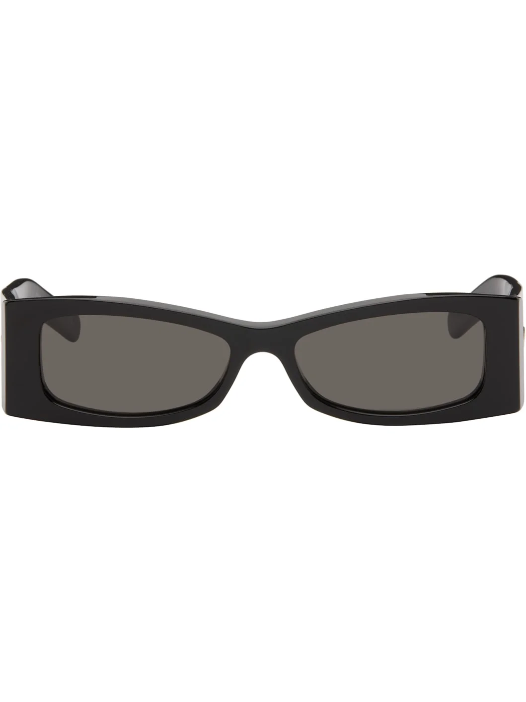 Handcrafted rectangular acetate-frame sunglasses. · Gray lenses · Integrated nose pads · Logo embossed at temples · Includes pouch · Size: 56.16 145 Supplier color: Black Acetate. Made in Italy 261379M134033