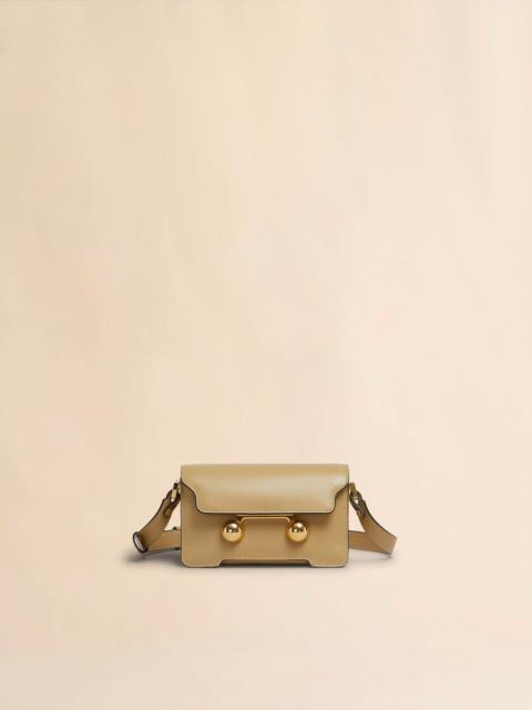 Trunkaroo rectangular mini shoulder bag crafted from calfskin leather. Front flap with magnetic closure, featuring engraved Marni lettering and oversized stud details. Contoured base on the front and back. One compartment with inside pocket. Lined in nappa leather. Detachable and adjustable buckled shoulder strap: can also be worn as a clutch. This product is made using leather from a Leather Working Group medalled tannery. LWG supports more responsible leather manufacturing across the globe. Made in Italy MODEL SBMP0193U0P694800R67 COMPOSITION Body: 100% Calf Leather - Lining: 100% Ovine Leather - Metallic Parts: 100% Brass - Metallic Parts: 100% Steel