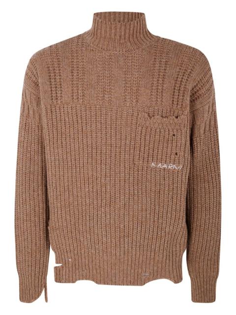 ribbed turtleneck sweater Highlights - Navy blue - Prominent ribbed texture - Patch pocket detail - Logo embroidery - Long sleeves Made in Italy Composition Virgin Wool 100% SIZE & FIT FittingInformation Designed for a relaxed fit, this piece allows for comfort and movement when worn Made with a midweight knit, this piece offers some stretch