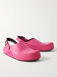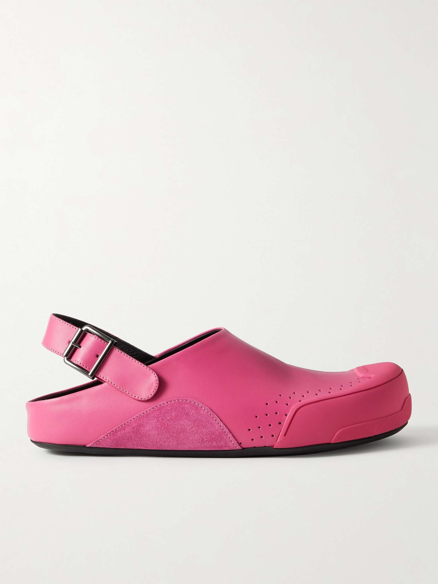 Marni's chunky clogs have been made in Italy from leather and trimmed with tonal suede. They're detailed with small perforations along the rubber toes and have buckle-fastening slingback straps to keep them from slipping. Size & Fit - Fits true to size. Take your normal size - Only available in full sizes, go up to the nearest whole size if you take a half size - European sizing Details & Care - Pink leather, suede and rubber - Buckle fastenings - Come with dust bags - Made in Italy
