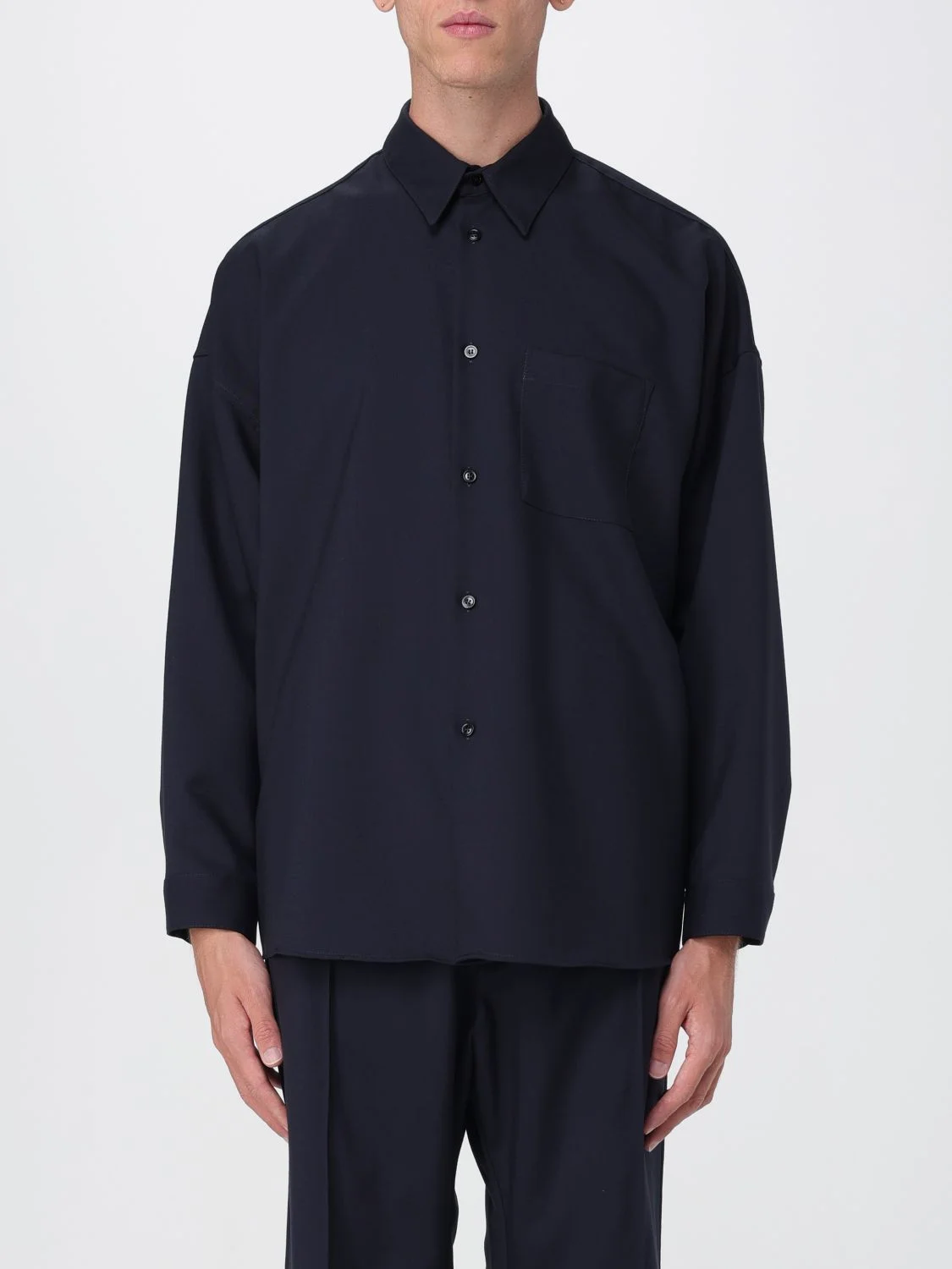 DESCRIPTION - Style: Classic - Neck: French - Shoulders: Relaxed - Closure: With buttons - Pockets: Patch pocket - Bottom: With curved hemline - Sleeves: Long sleeve shirts - Materials: Virgin wool - Pattern: Plain-colored DETAILS AND CARE Composition 100% virgin wool SIZE AND FIT Sizes not available Size and fit Regular fit Designer code: CUMU0061X3TW839 00B99 Giglio Code: H13870 Designer: Marni Collection: Marni Men Category: Clothing Marni