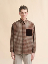 Long-sleeved shirt made from wool grain de poudre in a checked pattern. Boxy fit with button fastening. Contrast velvet chest pocket and Marni Mending logo. MODEL CUMU0061S7UTWA35CHM29