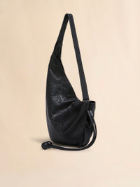 Small crossbody Hobo bag cut from nappa leather with a natural grain. The soft shape has an asymmetric silhouette with an adjustable drawstring strap with long laces that have two tonal leather baubles at the end. Zip closure. Made in Italy MODEL SBMP0216U0P803300N99 COMPOSITION Body: 100% Ovine Leather - Lining: 100% Ovine Leather - Metallic Parts: 100% Plastic - Metallic Parts: 100% Polyamide-Nylon - Metallic Parts: 100% Zama