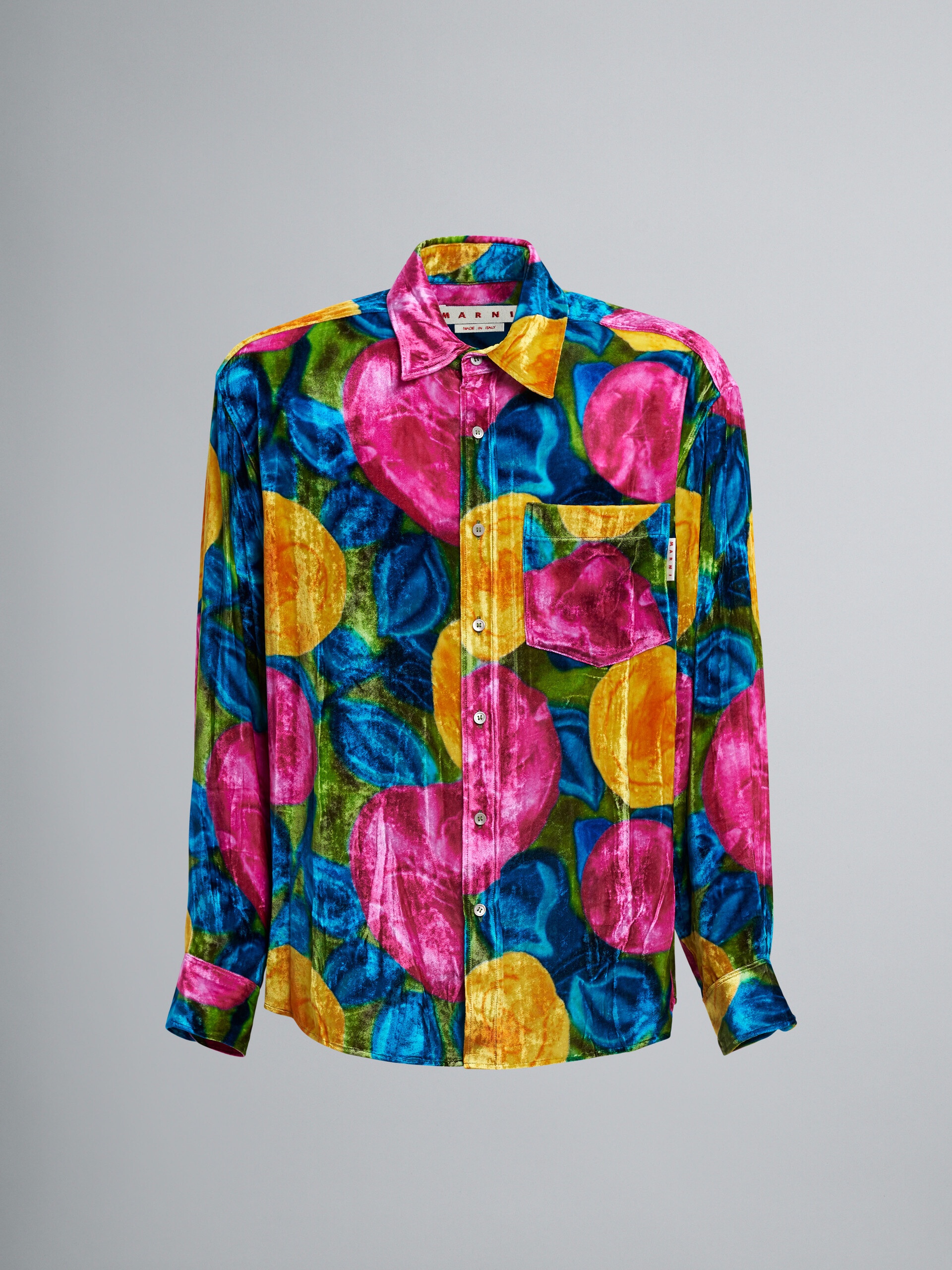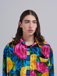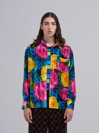 Spring Rite print velvet shirt. Spread collar; crinkled effect. Chest pocket; mother-of-pearl buttons. Rounded hem; satin label. Made in Italy. DETAILS FIT The shirt has a boxy fit. The model is 188 cm tall. The model is wearing a size 48 IT. COMPOSITION Primary Fabric: 82% Viscose-Rayon Woven 18% Silk Woven