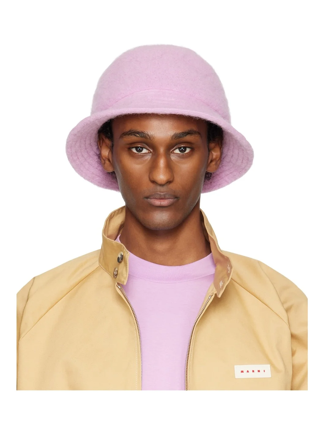 Felted knit alpaca-blend bucket hat in pink. · Quilted brim · Broadcloth lining Available exclusively at SSENSE. Supplier color: Mauve Body: 80% alpaca, 20% nylon. Lining: 100% cotton. Made in Italy 241379M140002