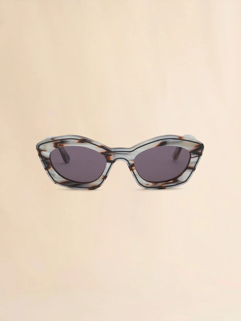 Kea Island sunglasses, crafted from acetate with a refined natural-inspired patterned finish. Ultra-chic cat-eye silhouette. Contrast nylon trims on the front and temples. Embellished with gold metal Marni lettering. Made in Italy MODEL EWME0020A1H380012QUO COMPOSITION Material: 100% Acetate