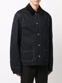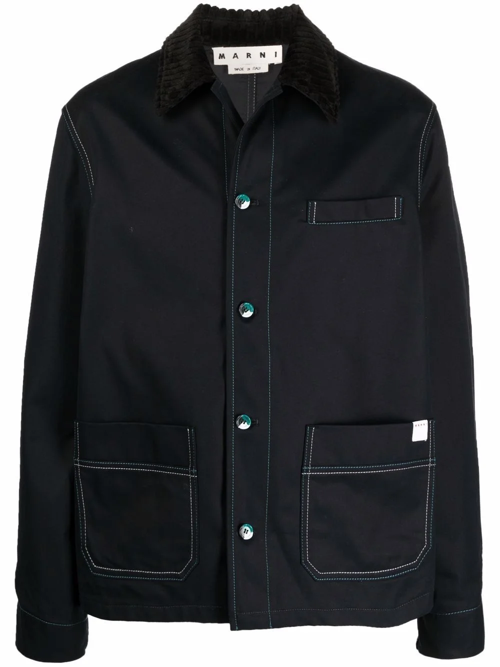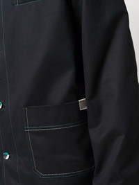 stitch-detail shirt jacket navy-blue cotton-blend contrast stitching classic collar snap fastening long sleeves Made in Italy Composition Outer: Cotton 100% Lining: Cotton 69%, Polyamide 31% SIZE & FIT Model measurements Height 6 ft 1 in(1.86 m) Bust/Chest 35.43 in(90 cm) Hips 35.43 in(90 cm) Waist 29.92 in(76 cm) FittingInformation This piece fits true to size. We recommend you get your regular size Cut for a loose fit Made with a mid-weight fabric Washing instructions Machine Wash