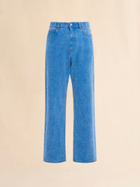 5-pocket jeans made from coated and stonewashed organic cotton denim. Relaxed mid-rise fit with wide leg. Button and zip fly. Leather patch with red Marni print on the back waist. Made in Italy MODEL PUJU0021A2USCW91BDB44 FIT The model is 6' 2". The model is wearing size 32 IT. COMPOSITION Primary Fabric: 100% Cotton Woven - Pocket Lining: 65% Polyester Woven 35% Cotton Woven - Application: 100% Calf Leather