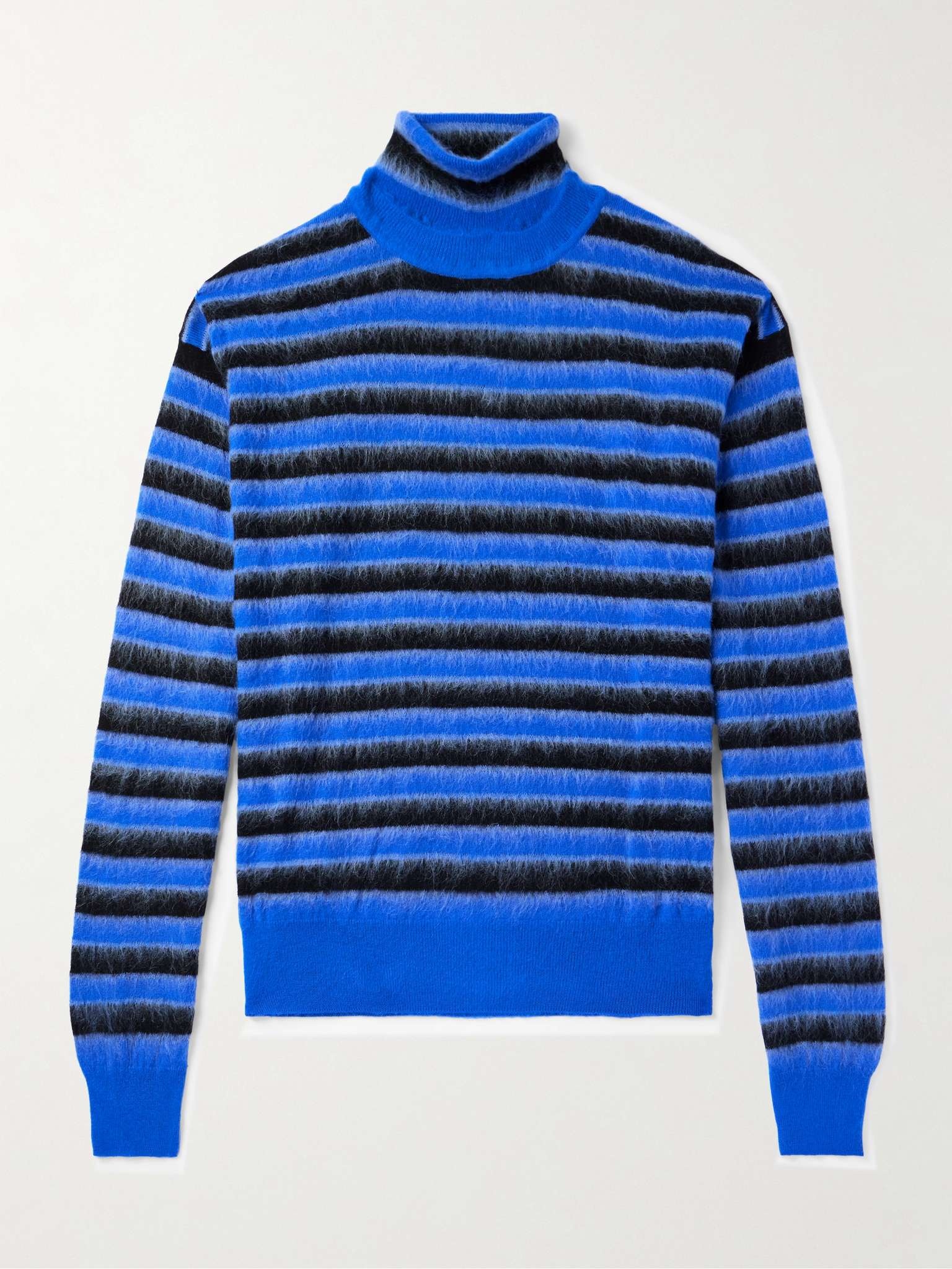 Creative Director Francesco Risso often employs methods like painting to get Marni's textures and patterns just right. Crafted from wool that's brushed for added softness, this sweater is knitted with distinctive stripes and designed for a layered effect at the rollneck collar. Size & Fit - Fits true to size. Take your normal size - Designed for a slightly loose fit - Dropped shoulder seam - Mid-weight knit - Model is shown wearing an IT 48 - Model measures: chest 38"/ 96cm, height 6'0"/ 183cm Details & Care - Tonal-blue and black brushed-wool - 100% wool - Dry clean