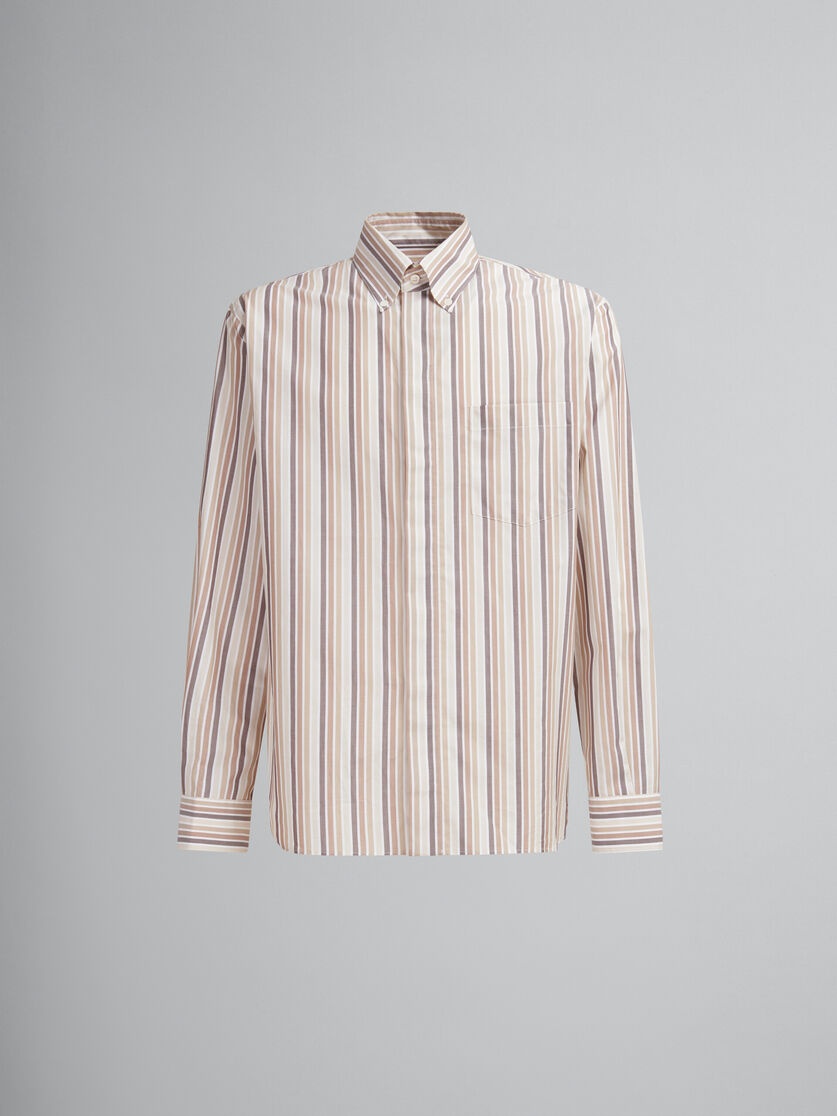 Long-sleeved shirt made from compact organic cotton poplin, flaunting a vertical striped pattern in tonal hues. Oversized fit with button-down collar, concealed button closure and chest pocket. Embellished with a canvas Marni tag on the back neck. Made in Italy MODEL CUMU0318A0UTC393STW60 FIT The model is 6' 1". The model is wearing size 48 IT. COMPOSITION Primary Fabric: 100% Cotton Woven