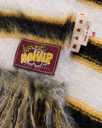Oversized scarves continue to be all the rage. This particular style by Marni is perfect for adding that final touch to your outfit, as it showcases a standout striped pattern and is finished with fringed hems. Your new go-to cold weather accessory, the scarf is produced in a plush mohair blend with a fuzzy texture for an extra cozy wear, especially when the temperature plummets. Size & Fit 155 x 30 cm (61 x 11.8 in) Product Details 75% mohair. 23% polyamide. 2% wool. Knit. Striped pattern. Fringed hems.