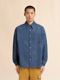 BLUE CHAMBRAY OVERSIZED SHIRT WITH FRAYED SUN MOTIF
