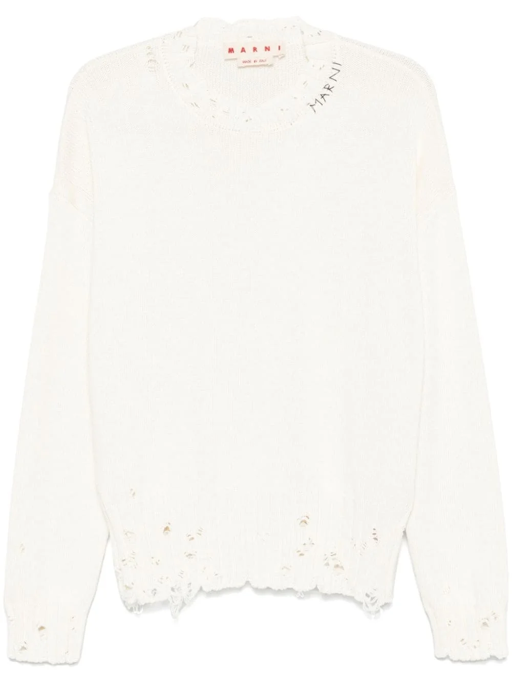 twisted crew-neck sweater Highlights - White - Cotton - Knitted construction - Crew neck - Distressed effect - Logo-embroidered collar - Long sleeves - Ribbed cuffs and hem Made in Italy Composition Cotton 100% SIZE & FIT Model measurements Height 6 ft 2 in(1.87 m) Bust/Chest 35.03 in(89 cm) Hips 34.64 in(88 cm) Waist 25.98 in(66 cm) FittingInformation Designed for a relaxed fit, this piece allows for comfort and movement when worn The ribbed hem offers a close, comfortable fit Made with a midweight knit, this piece offers some stretch