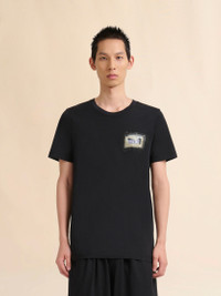 BLACK COTTON T-SHIRT WITH SMALL MARNI COLLAGE PRINT