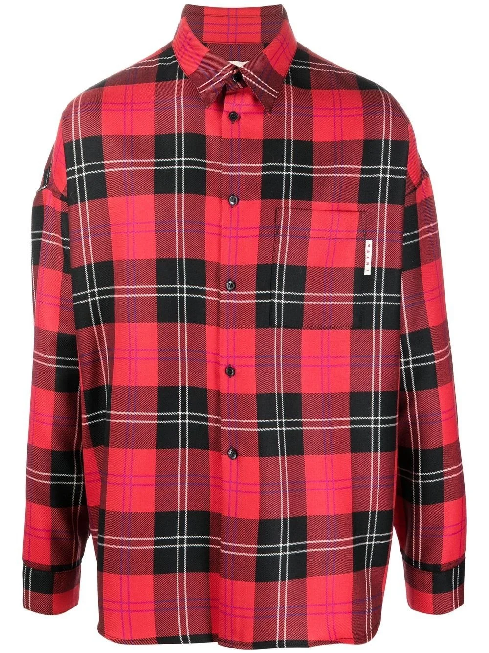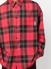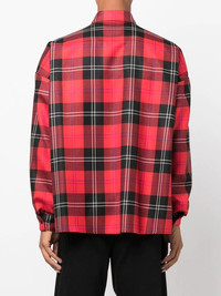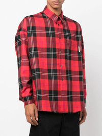 tartan button-down shirt black/red virgin wool check pattern button-down collar long sleeves chest patch pocket Imported Composition Virgin Wool 100% SIZE & FIT Model measurements Height 6 ft 2 in(1.87 m) Bust/Chest 38.18 in(97 cm) Hips 36.61 in(93 cm) Waist 29.13 in(74 cm) FittingInformation Designed to be unstructured, offering a loose fit throughout Made from a midweight non-stretch fabric This piece fits true to size – take your usual size Washing instructions Dry Clean Only
