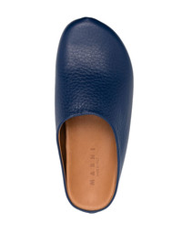 textured-leather slippers navy blue calf leather branded leather insole pebbled texture almond toe slip-on style flat rubber sole Made in Italy Composition Outer: Calf Leather 100% Sole: Rubber 100% Lining: Calf Leather 100% SIZE & FIT FittingInformation This piece fits small – take one size up Measurement HEEL 1.18 in(3 cm) Sole height 0.59 in(1.5 cm)