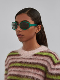 To-Sua sunglasses featuring a rounded shape in green satin-finish metal. Temples with Marni logo. Adjustable noise pads. Black lenses. DETAILS COMPOSITION Primary Fabric: 60% Acetate 40% Nylon