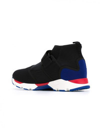 From Marni, black neoprene hi-top sneakers featuring velcro strap fastening, rounded toeline, multicoloured midsole, and rear heel tab. Upper: 100% Nylon Sole: 100% Rubbe EU Sizing.