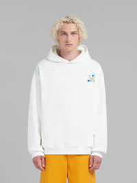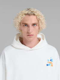 WHITE BIO COTTON HOODIE WITH MARNI DRIPPING PRINT