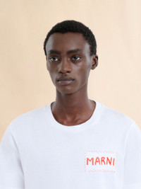 Organic jersey cotton T-shirt cut to a regular fit with round neckline and short sleeves. Finished with an embroidered label on the chest with the Marni logo. Made in Italy MODEL HUMU0198X0UTC44600W01 FIT The model is 6' 1". The model is wearing size 48 IT. COMPOSITION Primary Fabric: 100% Cotton Knit