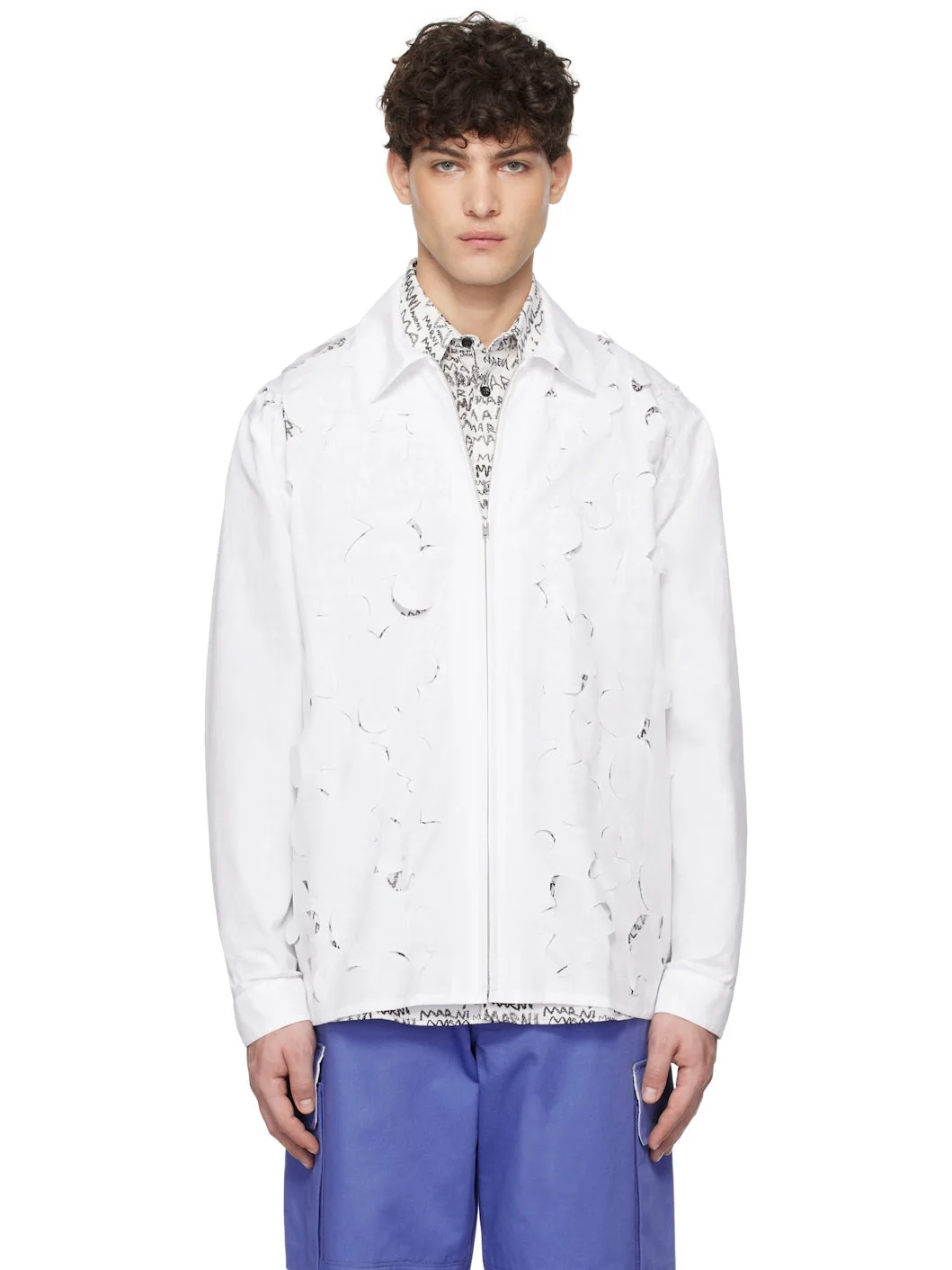 Organic cotton poplin shirt. Cutout floral pattern throughout. · Spread collar · Zip closure · Hand-stitched logo at shoulder · Adjustable single-button barrel cuffs Supplier color: Lily white 100% cotton. Made in Italy 251379M192001