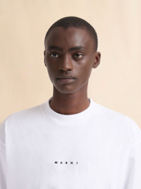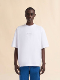 Short-sleeved crewneck T-shirt in organic cotton jersey. Boxy fit. Contrasting Marni logo print on the front. MODEL HUMU0223P1USCS87LOW01 COMPOSITION Primary Fabric: 100% Cotton Knit